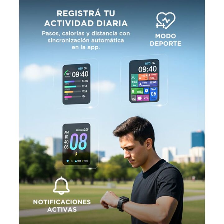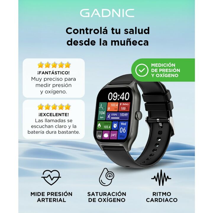 Gadnic presenta el nuevo Smartwatch IP68 Monitor de Frecuencia Cardiaca: Monitor de frecuencia cardíaca: Realiza un seguimiento continuo de tu ritmo cardíaco para obtener datos precisos durante el día. Monitor de sueño: Analiza la calidad de tu sueño, diferenciando entre fases ligeras, profundas y R...
