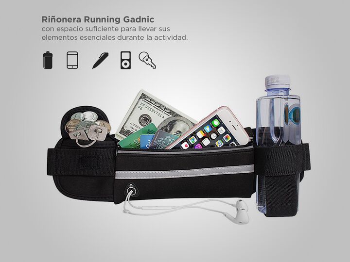Esta Riñonera Running Gadnic tiene espacio suficiente para llevar sus elementos esenciales durante la actividad, tales como llave de la casa, tarjetas bancarias, dinero en efectivo, pasaporte y Celulares. Pueden entrar celulares del tamaño de un iPhone 6 / 6s / 7 Plus Samsung Galaxy S6 / S5 / S4. Es...