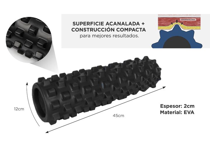 Ideal para aliviar tensiones y dolores causados por fascitis y contracturas musculares, el Foam Roller permite masajear simultáneamente distintos grupos musculares, desde la espalda alta y baja hasta las piernas, brazos y cuello, relajando los músculos y liberando puntos de tensión. Perfecto para la...