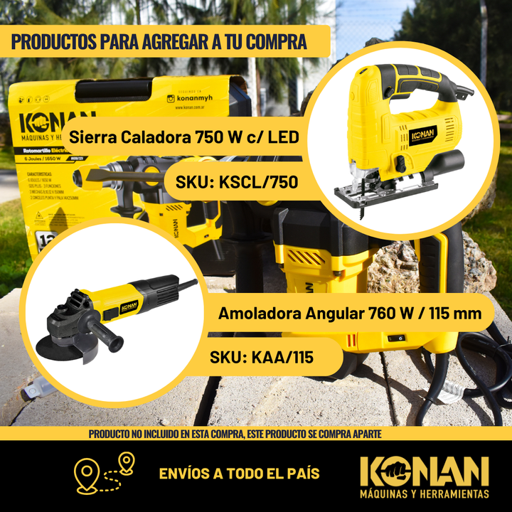 El Rotomartillo Eléctrico Konan KRM/32V es una herramienta potente y robusta, diseñada para perforaciones exigentes y trabajos de demolición liviana. Gracias a su motor de 1650W y una fuerza de impacto de 6 Joules, ofrece un rendimiento confi...