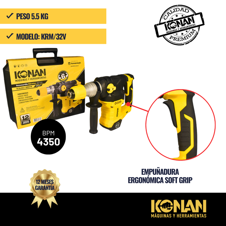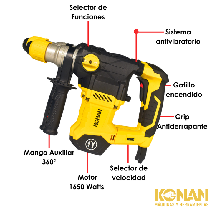 Rotomartillo Eléctrico Konan 6J 1650W SDS Plus KRM/32V