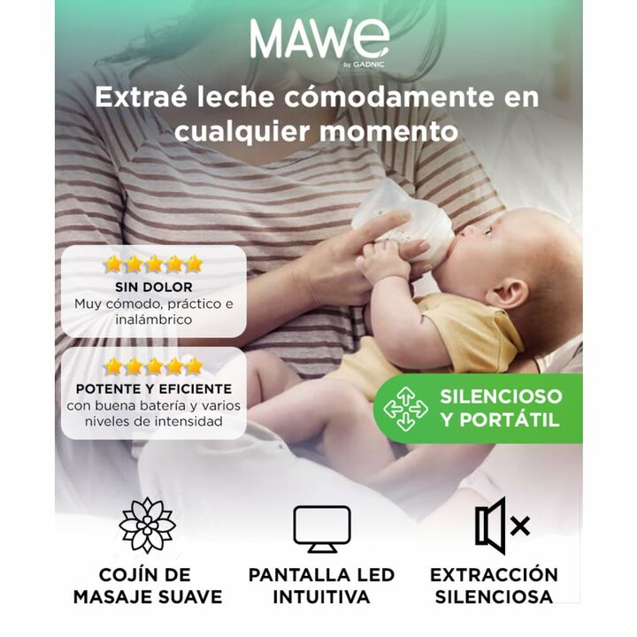 Descubrí el sacaleches eléctrico MAWE By Gadnic, diseñado para ofrecer una experiencia de extracción cómoda y eficiente. Su tecnología de frecuencia variable simula el ritmo natural del bebé, reduciendo la incomodidad y aumentando la producción de leche. Su sistema de prevención de retroceso de lech...