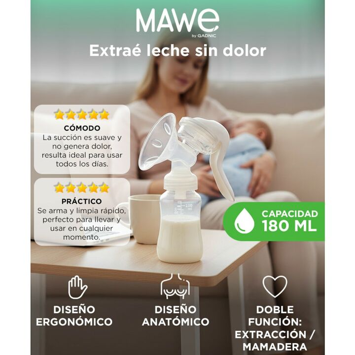 Gadnic presenta el nuevo Extractor Manual de 180ml: Diseño Ergonómico y Seguro: Mango ergonómico que facilita el agarre, permitiendo una extracción suave y sin molestias. Fabricado con materiales libres de BPA, garantizando la seguridad para el bebé y la mamá. Fácil de Usar y Limpiar: Sistema de ext...
