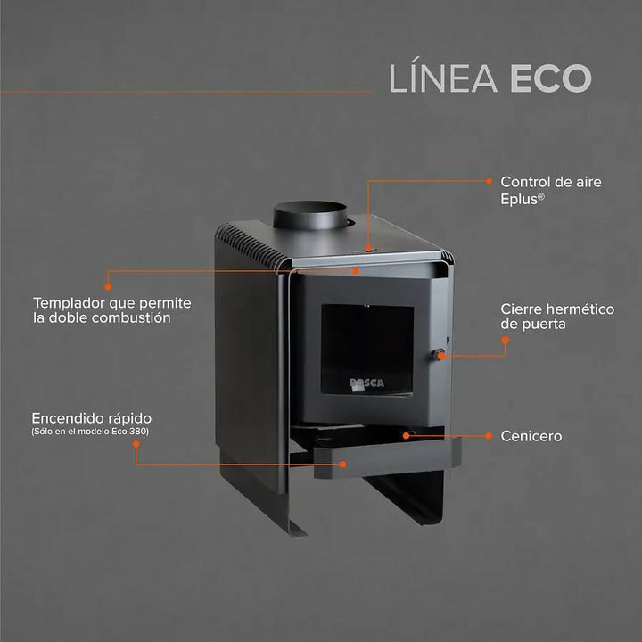 Calidad y calidez al precio ms convenienteLa Eco 350 es el modelo ms pequeo de nuestra lnea de calefactores. Es ideal para casas de 1 piso ya que puede calefaccionar entre los 100 y 120 m2. Est hecha completamente de acero pesa 505 kg y cuenta con recubrimiento de placas de vermiculita en sus latera...
