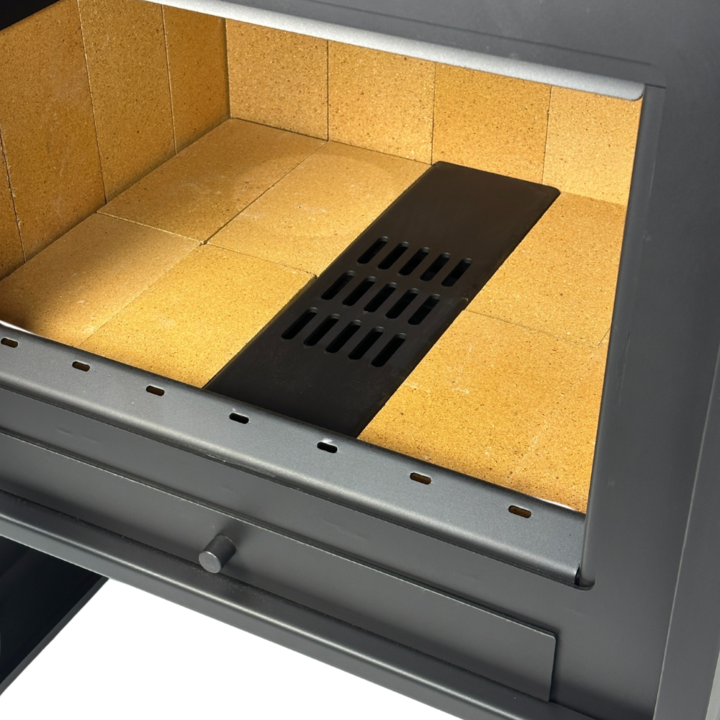 CARACTERISTICAS Mayor superficie de carga Ms Kcal mejor regulacin Cajn cenicero ms grande Soporte superior de los ladrillos movil Visor de vidrio 453 x 271 cm Entrada de leos 513x 286 cm Color Negro Tromen HT Visor vitrocermico Schott RobaxAmbiente a climatizar hasta 180 mPotencia 24.000 kcalhMEDID...