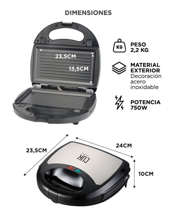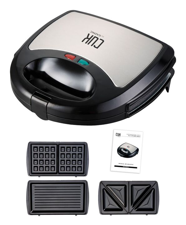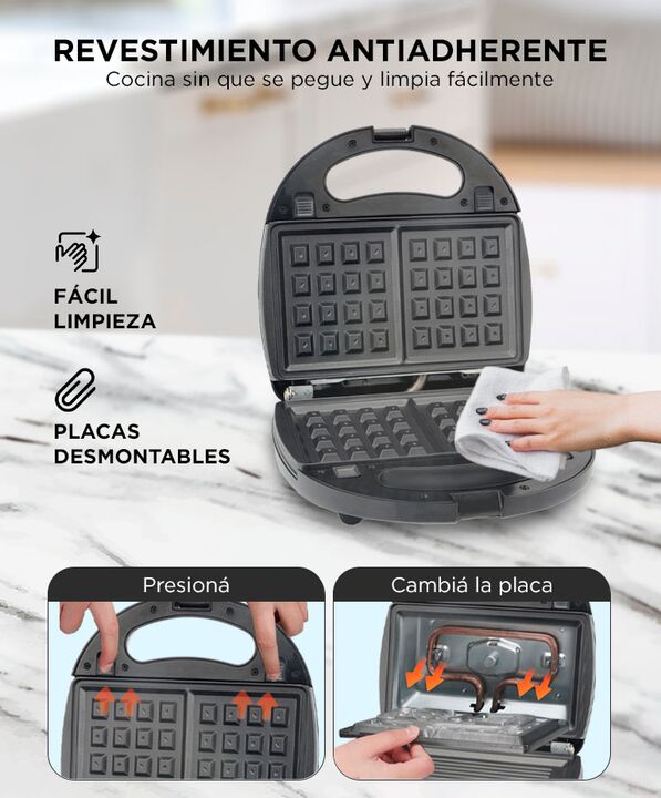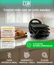 Sistema 3 en 1 con placas intercambiables: La Sandwichera 750W CUK BY GADNIC WAFLES04 incluye placas para sandwich, waffle y grill, permitiendo preparar distintas recetas con un solo equipo. Potencia de 750W para calentamiento rápido: Ofrece cocción uniforme y tiempos reducidos, ideal para desayunos...