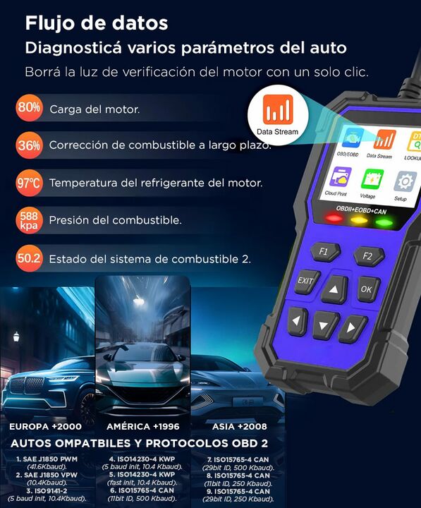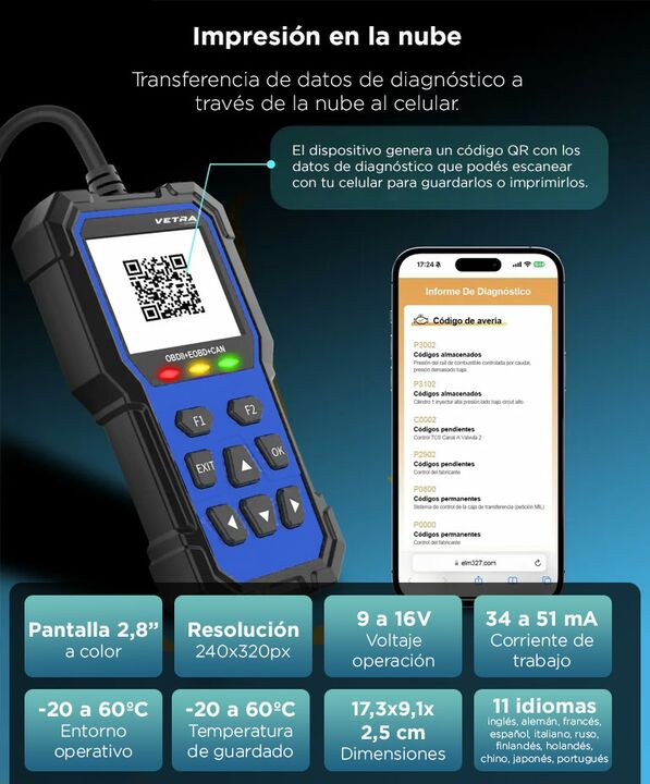 Diagnóstico completo del motor en segundos: El Scanner de Batería OBD2 VETRA by GADNIC permite leer y borrar códigos de falla, incluyendo la luz Check Engine, sin necesidad de herramientas adicionales. Test de batería y voltaje integrado: Funciona en un rango de 9 a 16V, permitiendo evaluar el estad...