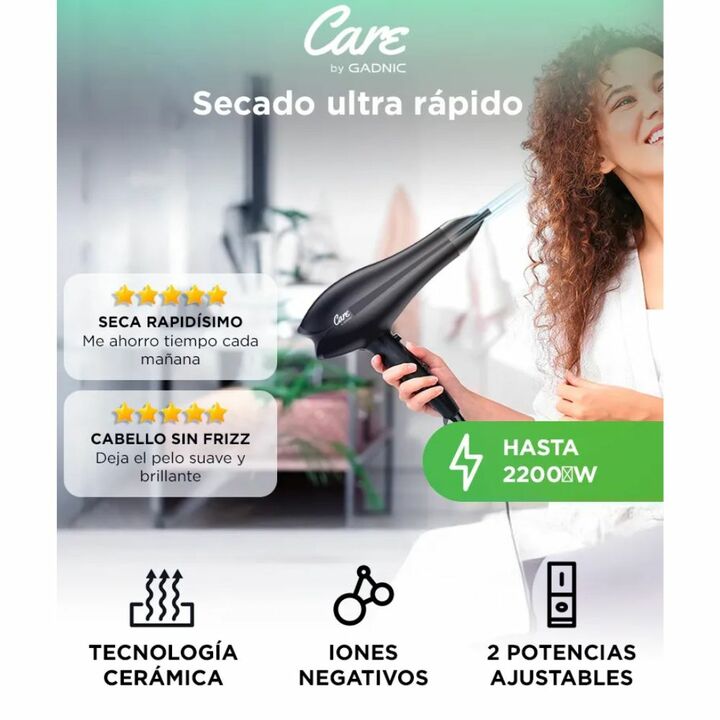 ¡GADNIC Care presenta su nueva línea de productos de peluquería profesional! Éste nuevo secador de pelo presenta tecnología cerámica y de iones negativos que lo convierten en uno de los más versátiles y modernos del mercado. ¡Llevá su potencia al máximo con su selector de 2 potencias (2050w - 2200w)...