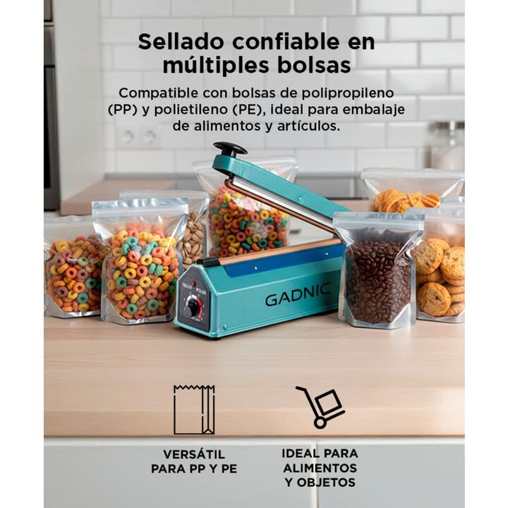 ¡GADNIC presenta su innovadora línea de selladora de bolsas! Este artículo te servirá para todas las bolsas de material termosellable. Rápida y segura, ideal para el hogar, el comercio, los productos, las tiendas de comestibles y la industria. Las aplicaciones de ésta selladora de bolsas son muchas,...