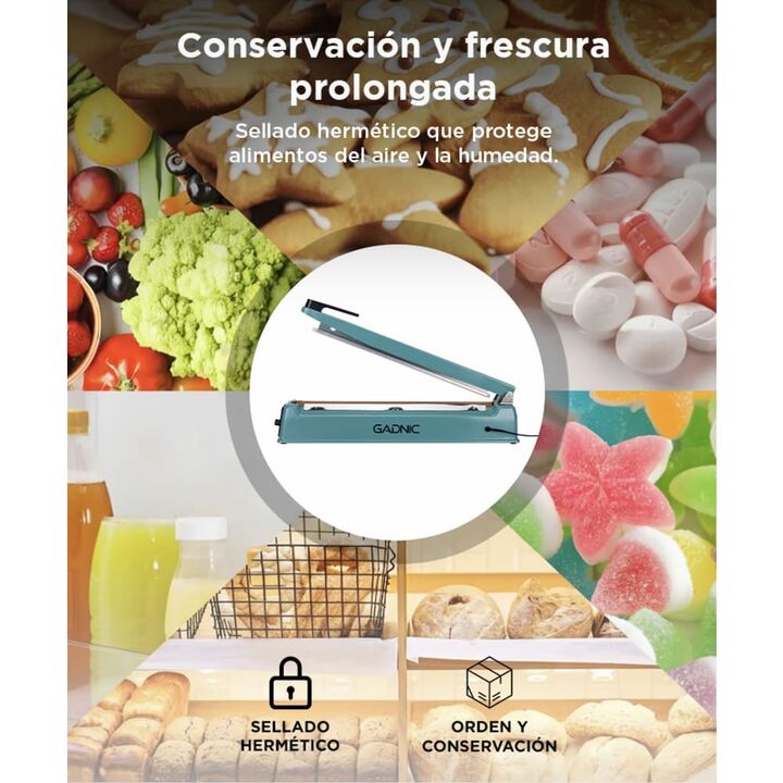 ¡GADNIC presenta su innovadora línea de selladora de bolsas tamaño grande! Este artículo le servirá para todas las bolsas de material termosellable. Rápida y segura, ideal para el hogar, el comercio, los productos, las tiendas de comestibles y la industria. Las aplicaciones de ésta selladora de bols...
