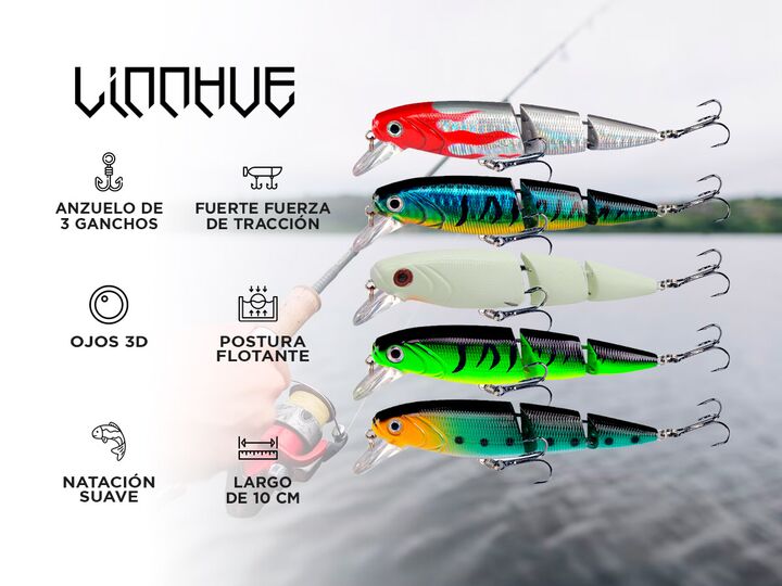 ¡Innovador Señuelo de pesca Linnhue! Amantes de la pesca, les presentamos un producto que les encantará: el señuelo de pesca Linnhue. Este cebo artificial ha sido diseñado para imitar a la perfección los movimientos de un pez, atrayendo así a los peces depredadores y aumentando las posibilidades de ...