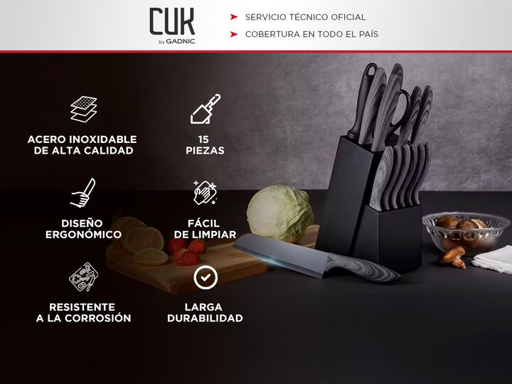 Gadnic by Cuk presenta el nuevo set de 15 piezas cuchillos de cocina: Ultra afilados: Las hojas de los cuchillos están diseñadas para mantener un filo excepcionalmente afilado para un corte preciso. Hojas antiadherentes: La capa antiadherente de las hojas evita que los alimentos se peguen, facilitan...