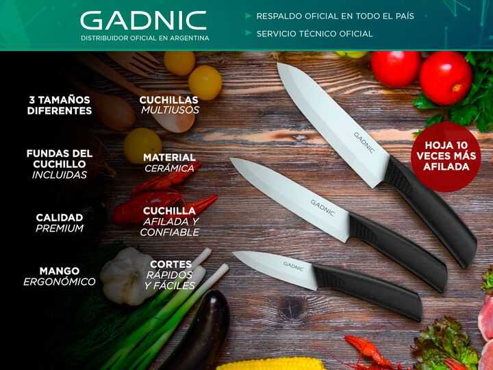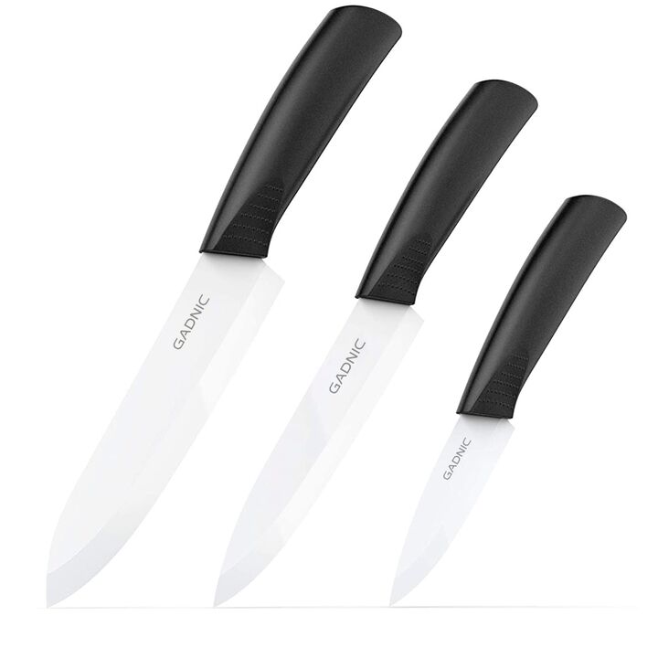 ¡Nuevo Set de Cuchillos Gadnic! Juego completo: El juego de cuchillos Gadnic contiene 3 cuchillos de cocina de diferentes tamaños, cada uno con la funda del cuchillo. Calidad premium: nuestro cuchillo está hecho con polvo de óxido de circonio de alta calidad para brindarle una cuchilla afilada y con...