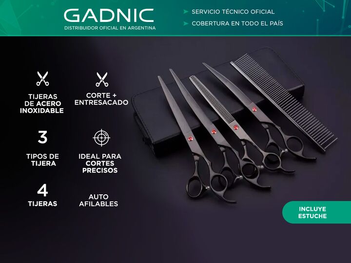 ¡Gadnic presenta su nuevo set de peluquería canina! Un gran conjunto de herramientas para cortar el pelo de las mascotas, crear un nuevo estilo de cabello, hacer que sean hermosos y a la moda. ¡Su construcción de acero inoxidable y su tecnología auto-afilable las hacen las mas elegidas del mercado! ...