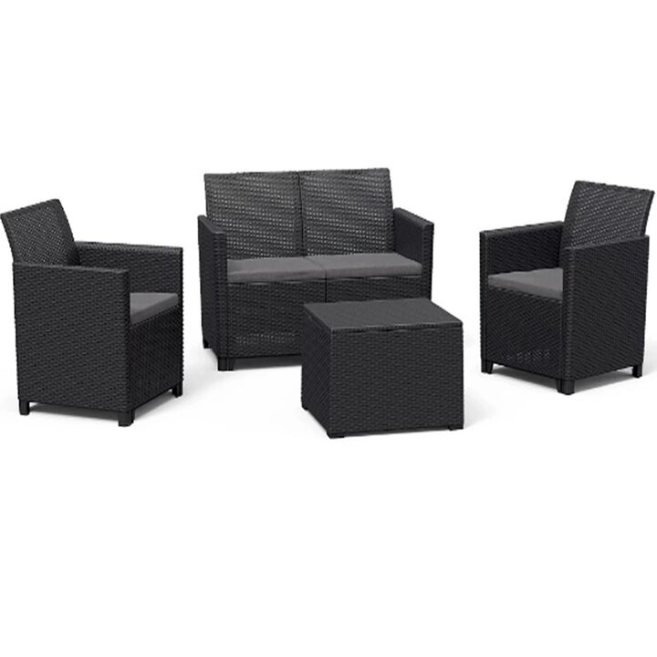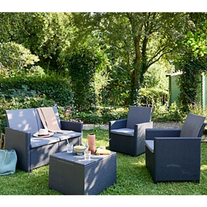 Set de Jardín Keter Emma 2 Sillas 1 Sillón 1 Mesa Graphite Origen: Nacional Marca: Keter Alto: 81 cm Ancho: 178 cm Peso: 34 kg Modelo: EMMA Garantía: 12 meses Tipo de producto: Set de exterior Material: Polipropileno Requiere armado: Sí Peso máximo soportado: 120 kg