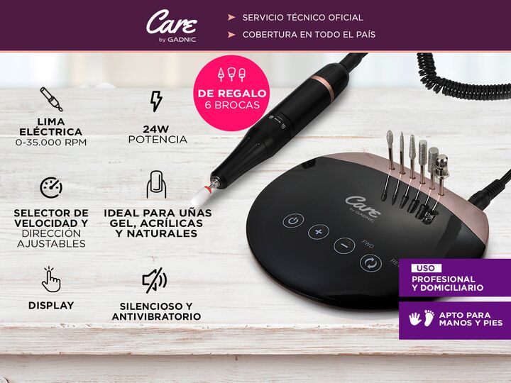 Especificaciones Torno Para Uñas TCH45 Gadnic Centro Pulido Manicura con Pantalla Tactíl - MANI0045 Certificado: CE Voltaje: 100V-120V 60Hz; 220V-240 50HZ; Velocidad: 0-35.000 RPM ajuste de velocidad Display: Sí Puntas intercambiables: Sí Power: 24w Medidas: 11,7 (alto) x 13,2 (ancho) x 3,2cm (profu...