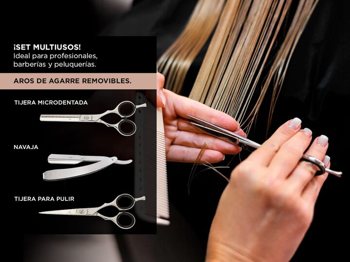 ¡Nuevo set completo tijeras Gadnic! El nuevo set profesional de tijeras de acero inoxidable es ideal para peluquerías y barberías. Construido en acero inoxidable te permitirá realizar cortes con precisión y profesionalidad. Aleación de cobalto y agarre seguro: Con terminación de pulido brillante, y ...