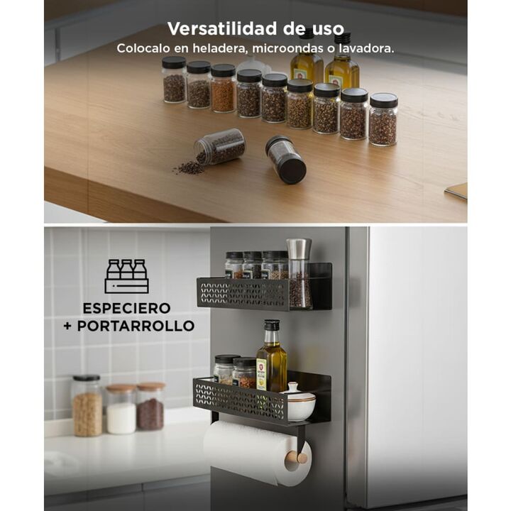 El pack de 4 estantes de almacenamiento magnéticos es una excelente opción para quienes buscan optimizar el espacio en la cocina, la lavadora o el microondas. Fabricados con arte en hierro y recubiertos con pintura anticorrosiva y antióxido, estos estantes no solo son robustos y duraderos, sino que ...