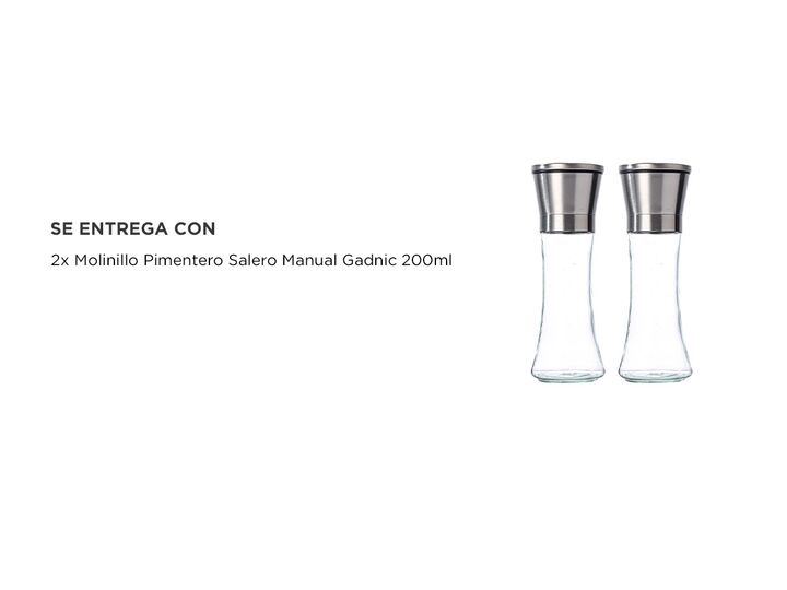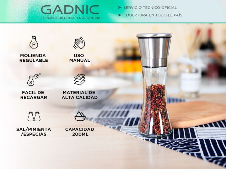 El Molinillo Pimentero Salero Manual Gadnic PM1 es la elección perfecta para quienes buscan calidad y estilo en su cocina. Con un diseño moderno y ergonómico, este molinillo se adapta tanto a cocineros aficionados como a chefs experimentados. Su versatilidad, al permitir moler tanto sal como pimient...