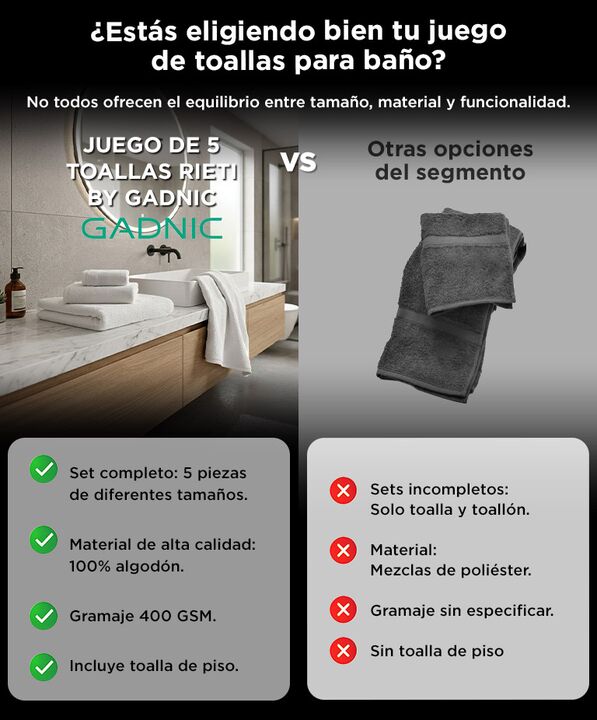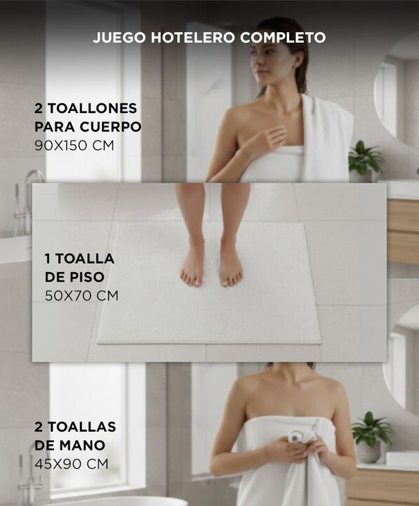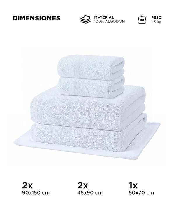 Set x5 Toallas Rieti By Gadnic 100% Algodón Premium Blancas Toalla Toallón Toalla De Piso