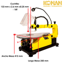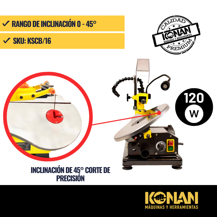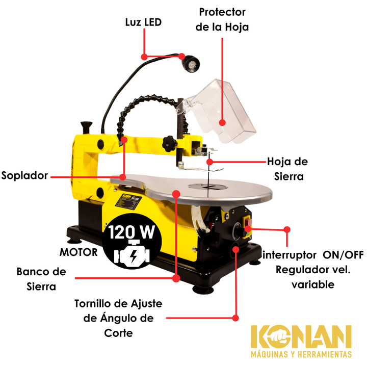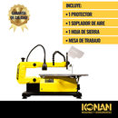 La sierra caladora de banco KONAN es una herramienta eléctrica diseñada para realizar cortes precisos y detallados en una amplia variedad de materiales, como madera, plástico y algunos tipos de materiales compuestos. A diferencia de una caladora de mano, está fijada a una base sólida, lo que proporc...