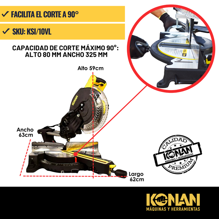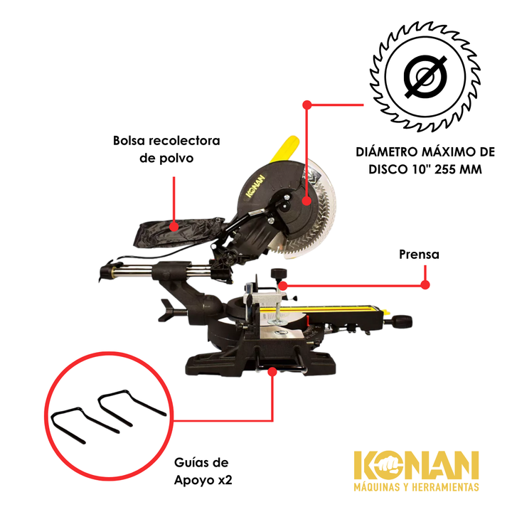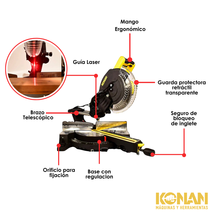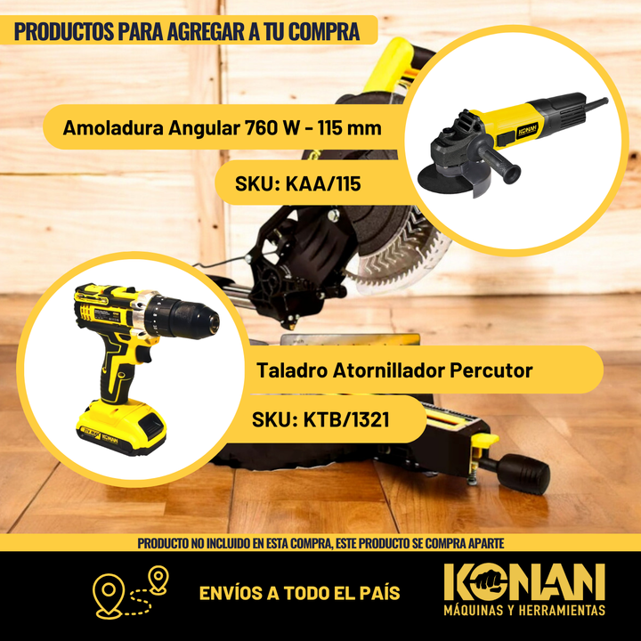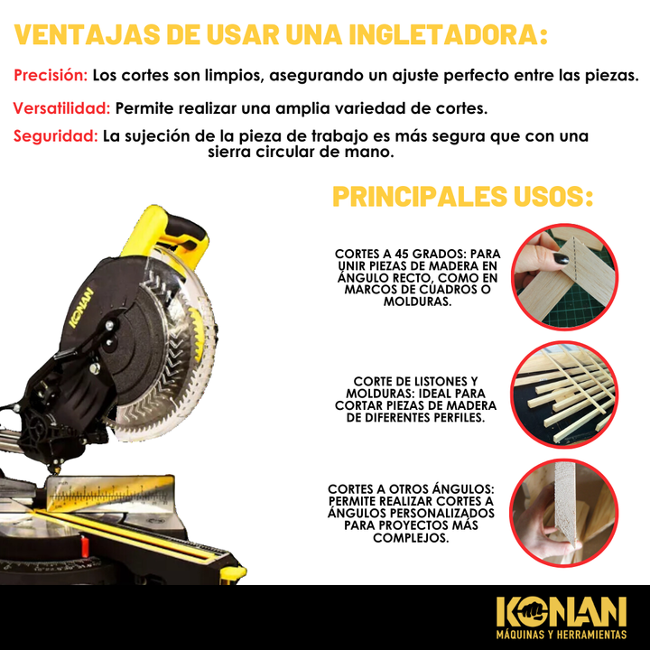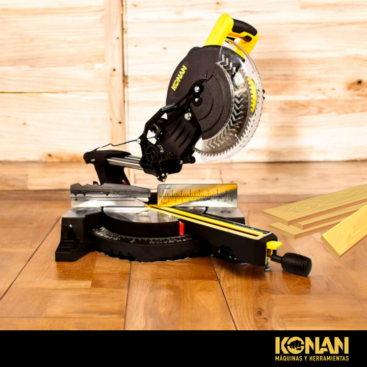 La sierra ingletadora KONAN es una herramienta eléctrica diseñada para realizar cortes precisos en ángulos de 90 grados o en ángulos específicos, conocidos como ingletes. Es una herramienta indispensable en carpintería, ebanistería y proyectos de bricolaje, ya que permite realizar cortes limpios y u...