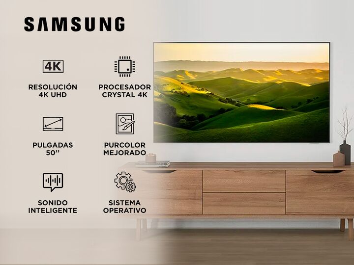 Viví una nueva dimensión en calidad de imagen con el Samsung Crystal UHD 4K DU7000. Su pantalla de 50 ofrece colores vibrantes con tecnología PurColor y máxima definición 4K. Equipado con el procesador Crystal 4K, cada escena es más nítida y fluida gracias a Motion Xcelerator y compatibilidad HDR10+...