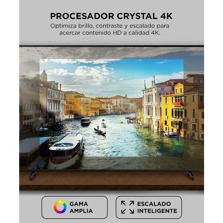 Imagen Crystal UHD 4K: Resolución 3840×2160 con mayor detalle, colores más reales y optimización automática gracias al procesador Crystal 4K. PurColor y alto contraste: Amplía la gama cromática y mejora la profundidad tonal para una experiencia más cinematográfica en películas y series. Smart TV con...