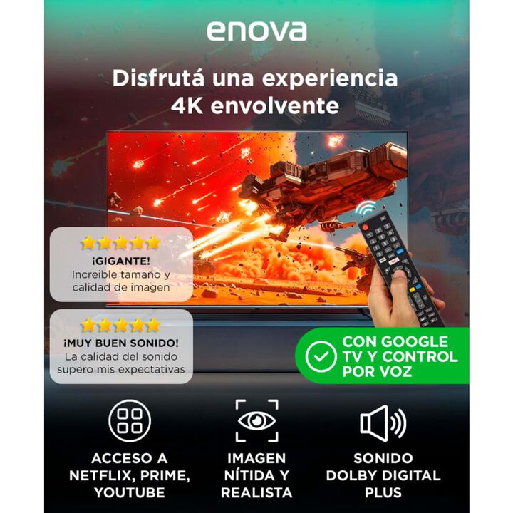 Smart TV Enova 75 Pulgadas LED 4K UHD Google TV Chromecast Integrado