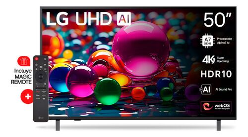 Smart TV LG UHD AI UA80 4K de 50 pulgadas - 50UA8050PSA Funciones principales - Colores y detalles impresionantes con HDR10 Pro 4K - Calidad de imagen 4K, imágenes mejoradas y sonido envolvente gracias al procesador alpha 7 4K AI Gen8 - Nuevo botón de IA, controles de voz y funciones de arrastrar y ...