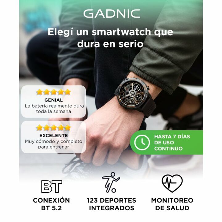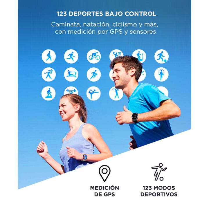 Autonomía real de hasta 7 días: Olvidate de cargarlo a diario. Rendimiento continuo incluso con sensores activos. 123 modos deportivos integrados: Desde running hasta natación. Monitoreo detallado por GPS y app Da Fit. Sensores de salud confiables: Mide presión, oxígeno, ritmo cardíaco y calidad de ...
