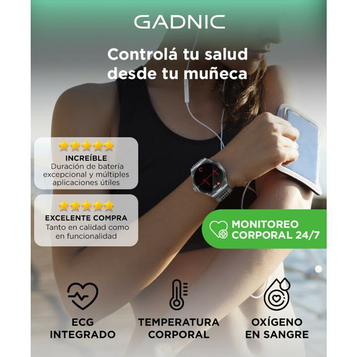 Monitoreo de salud completo: Medí ECG, temperatura, oxígeno en sangre y presión arterial desde tu muñeca. Datos sincronizables con app. Conectividad BT con llamadas: Recibí y realizá llamadas, consultá contactos y escuchá música sin sacar el celular del bolsillo. Ideal para entrenamientos y deporte:...