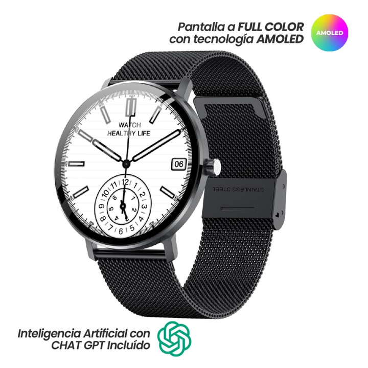 Smartwatch Gr23 Luxe Ia Negro Grow Home - Pantalla Tactil: 1.32" - Memoria Ram:684K+2Mb - Memoria Interna: 1Gb - Color: Negro - Gps Deportivo - Posee Podometro. - Se Pueden Contestar Emails. - Monitor De Sueño. Monitor De Latidosdel Corazon. Temporizador. - Soporta + De 10 Lenguajes Diferentes.Manu...
