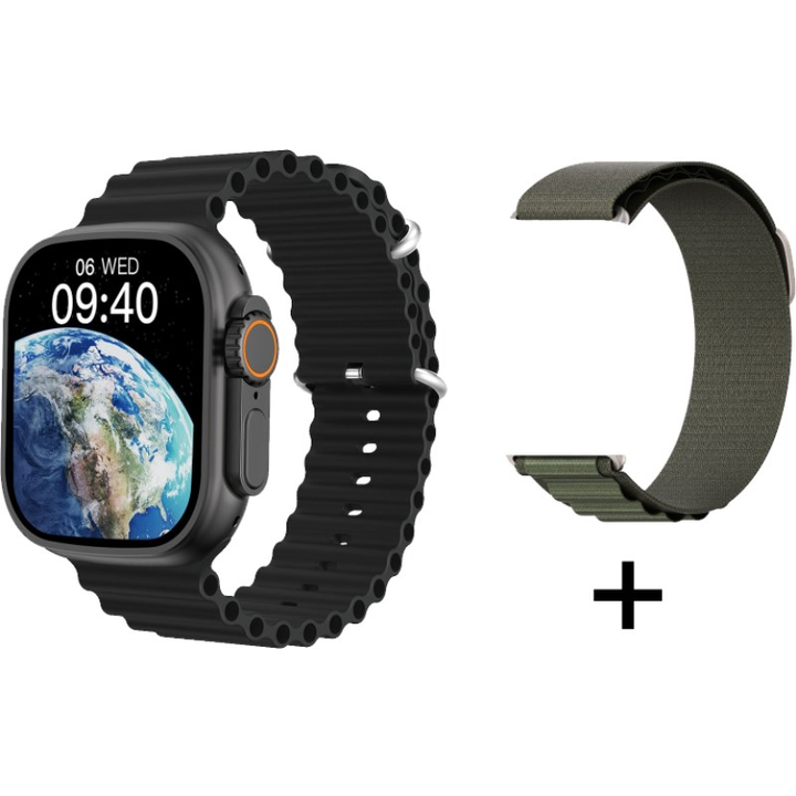 Smartwatch Grow Home Gr29 Ultra+ Doble Malla: 1 Negra Ocean Y 1 Verde De Tela - Carcaza Gris Oscuro Reloj Inteligente De Grandes Prestaciones. Se Pueden Realizar Llamadas Telefonicas. Recibir Mensajes De Whatsapp. Redes Sociales. Tiene Sistema Multideporte: Medicion De Calorias Y Latidos Por Minuto....