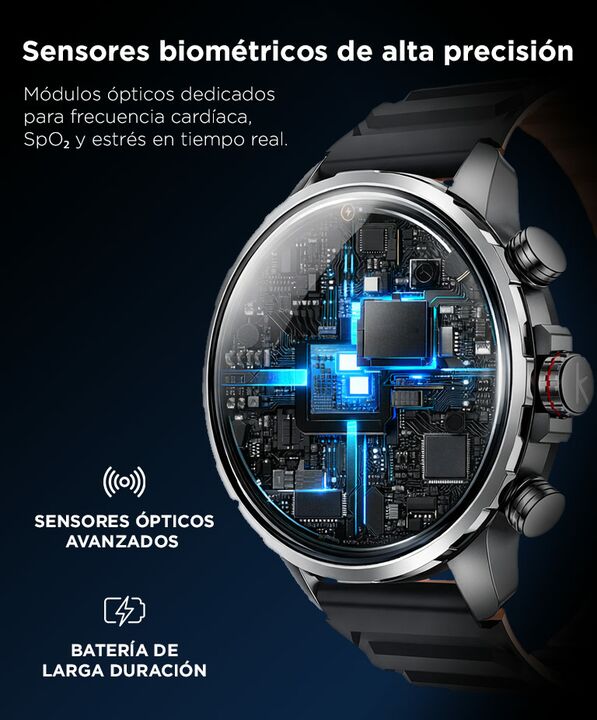 PANTALLA Y DISEÑO El smartwatch Kieslect Kr3 cuenta con una pantalla amoled de 1.5 pulgadas que brinda colores vivos y gran definicion Su disen?o moderno combina resistencia y estilo permitiendo un uso comodo durante todo el dia Los botones fisicos y el control tactil facilitan una navegacion rapida...