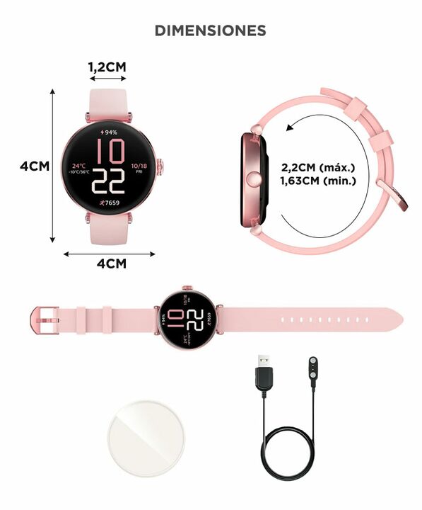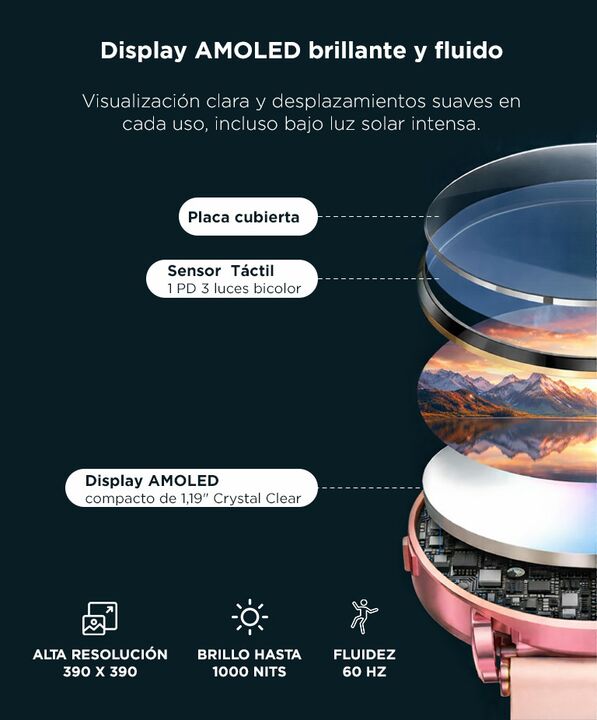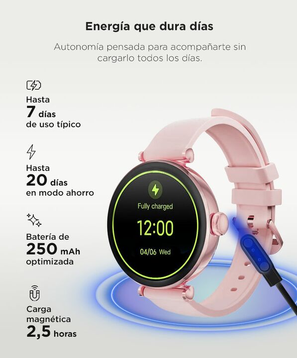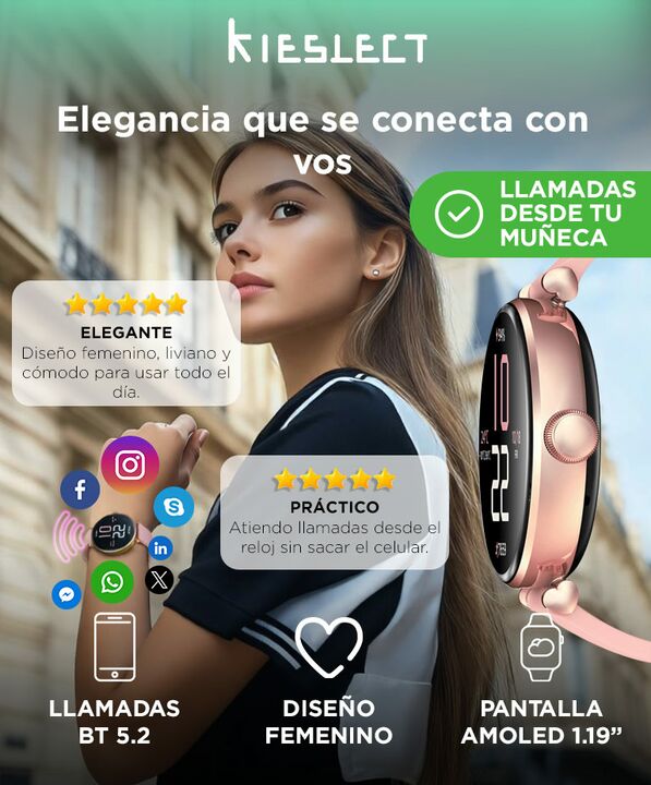 DISENO ELEGANTE Y COMODO El smartwatch Kieslect Pura Ele combina un marco metalico estilizado con un diseno liviano y femenino. Esta pensado para acompañar el uso diario con comodidad prolongada. Su formato compacto se adapta facilmente a la muñeca. Es una opcion funcional con presencia estetica cui...