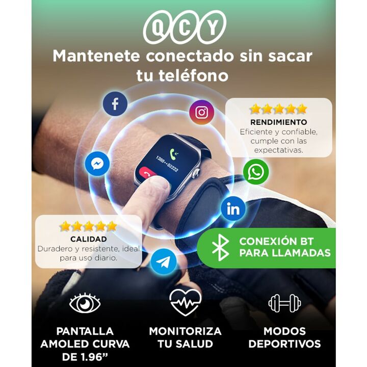 Pantalla AMOLED de Alta Definición: El QCY GS2 combina un diseño metálico refinado con una pantalla AMOLED curva de 1.96”, ofreciendo colores vibrantes, fluidez y un brillo que se adapta a cualquier ambiente. Su relación pantalla-cuerpo del 79% te permite disfrutar de una vista más amplia y una esté...