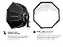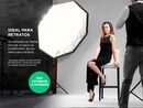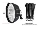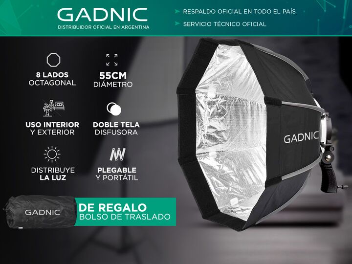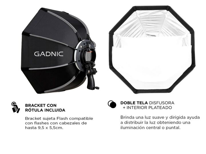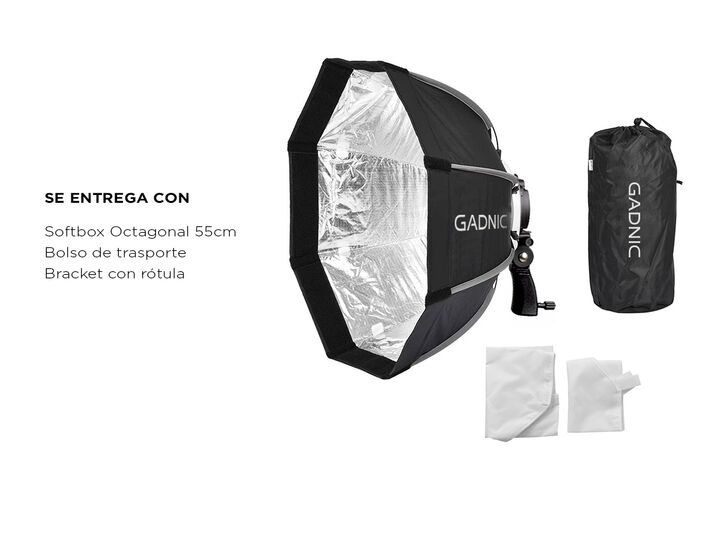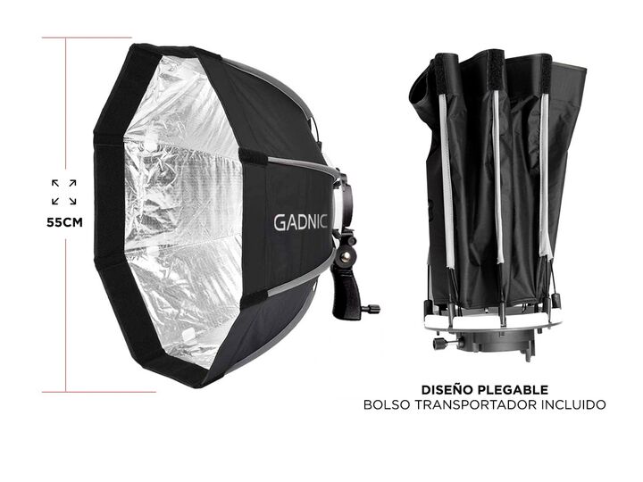 Su reflexión en forma circular lo hace un modificador de luz ideal para retratos. Brinda una luz suave y dirigida, controlada en la escena sin dominantes de color. La doble tela difusora y su interior plateado ayuda a distribuir la luz internamente evitando que la proyección del destello produzca un...
