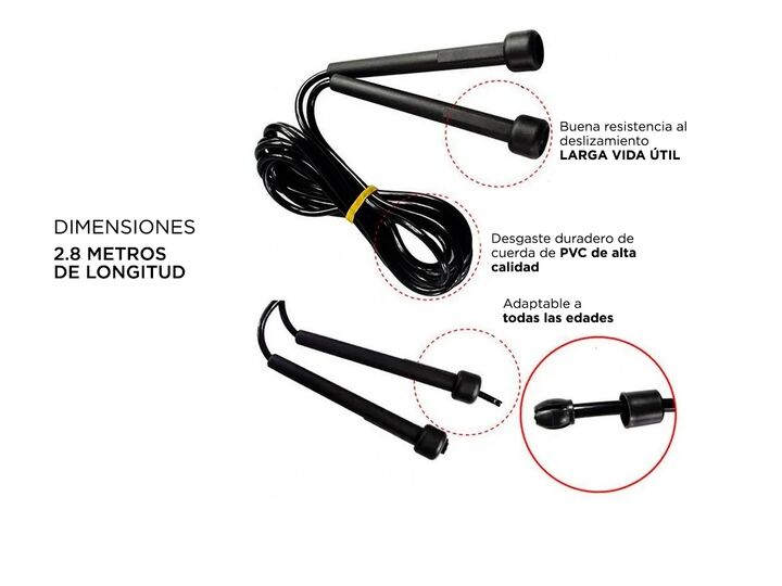Nuestra cuerda de saltar es ideal para el entrenamiento de entrenamiento cruzado, entrenamiento de boxeo u otros programas de entrenamiento de nivel profesional para ayudarlo a mejorar su rendimiento deportivo a un nuevo nivel. Especificaciones Medidas: Largo 2.80 mts Medidas del mango:12 cm Ancho d...