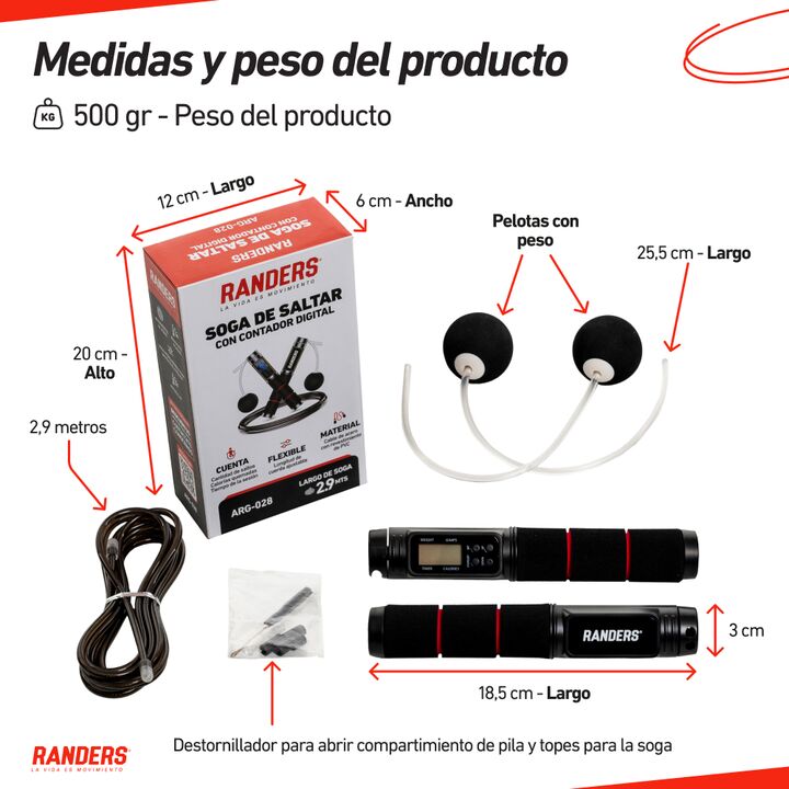 ¡Elevá tu entrenamiento cardio con la Soga de Saltar ARG-028! Con un largo de 2.9 metros y fabricada con cable de acero de 5mm revestido en PVC, esta soga es ideal para saltar tanto en interiores como en exteriores. Su contador digital integrado te permite llevar un control preciso de tus saltos, ca...