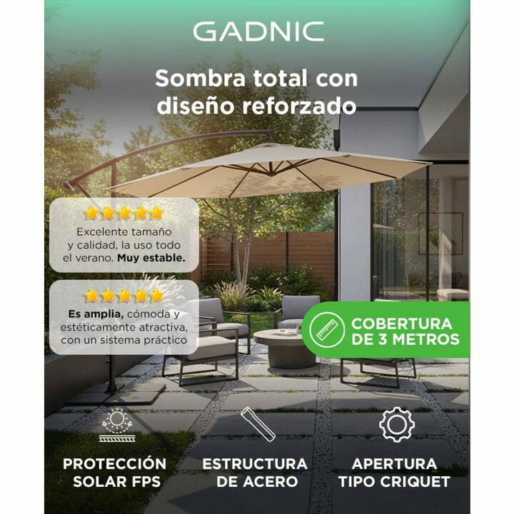 ¡GADNIC presenta su nueva línea de sombrillas de alta calidad con protección solar! ¡Hecho de 100 por ciento de poliéster! Impermeable, duradera y fácil de limpiar Poste de aluminio con recubrimiento anti-oxidante y 8 nervaduras resistentes que brindan un soporte más fuerte y estable que las demás. ...