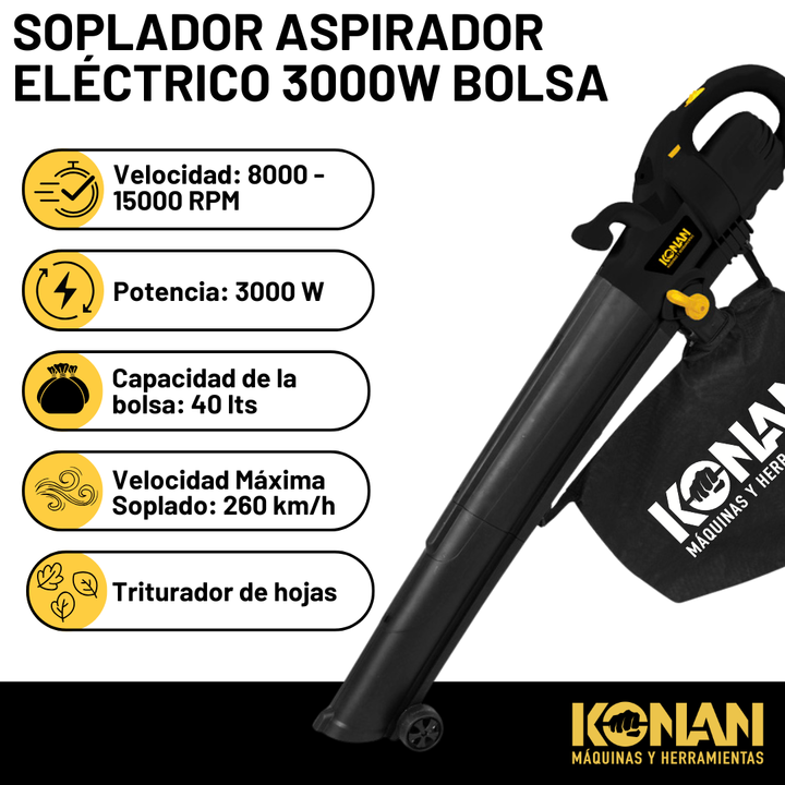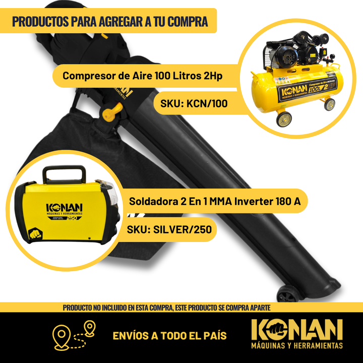 El Soplador Aspirador Electrico Konan KSP3000 es la herramienta ideal para mantener tus espacios exteriores limpios y ordenados. Con una potente potencia de 3000w y una velocidad de soplado de 260 km/h, podrás deshacerte de hojas, basura y otros desechos en minutos. Su caudal de aire de 153 CFM aseg...