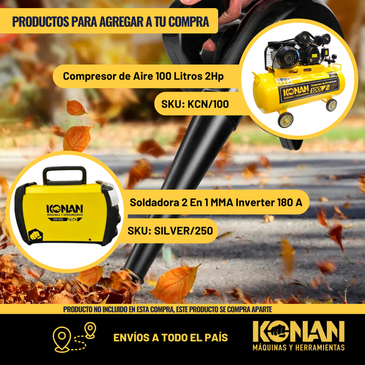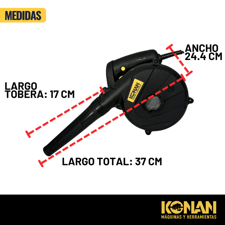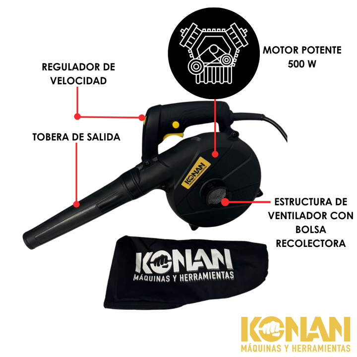 El Soplador Eléctrico Konan de 500 watts es una herramienta práctica y eficiente, ideal para limpieza rápida y sin esfuerzo en hogares, talleres y exteriores. Su diseño liviano y compacto permite un manejo cómodo, mientras que su motor brinda la potencia necesaria pa...