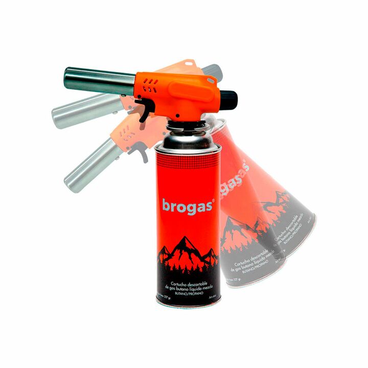 El Soplete Brogas con Gatillo y Sistema Clip 360° es práctico, potente y fácil de usar. Diseñado para colocarse directamente sobre cartuchos de gas tipo aerosol con sistema clip, permite trabajar en cualquier posición gracias a su rotación de 360°, brindando mayor comodidad y precisión.
