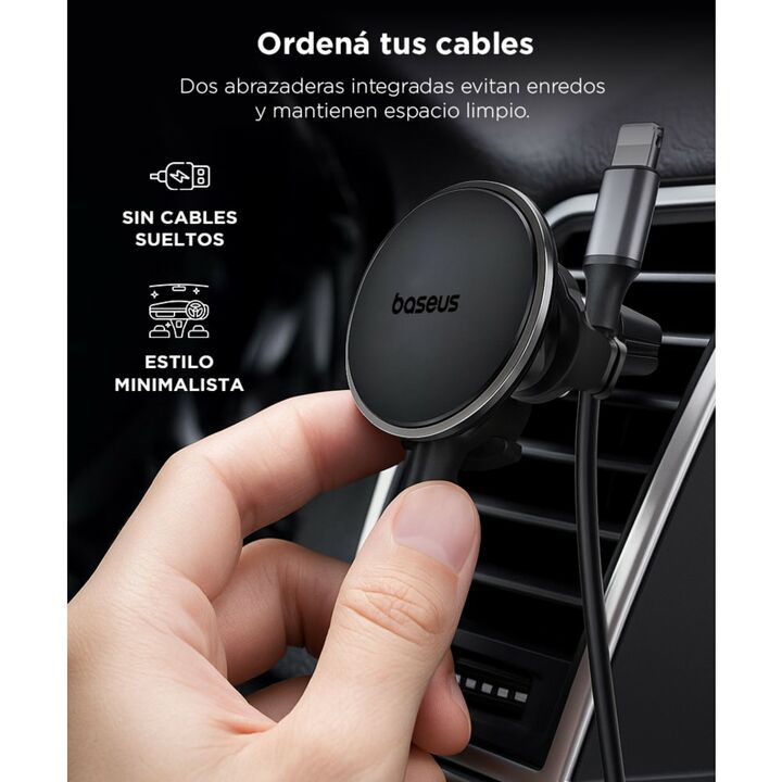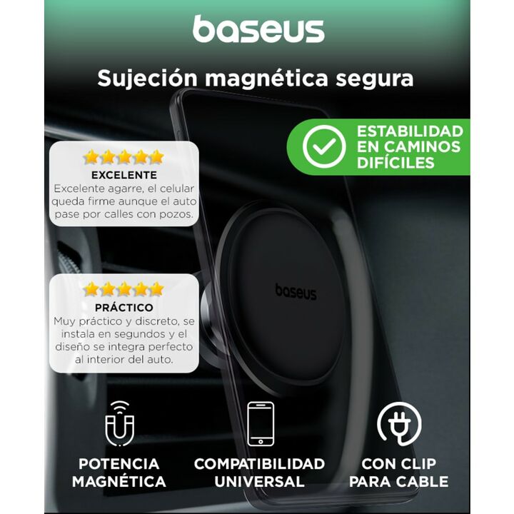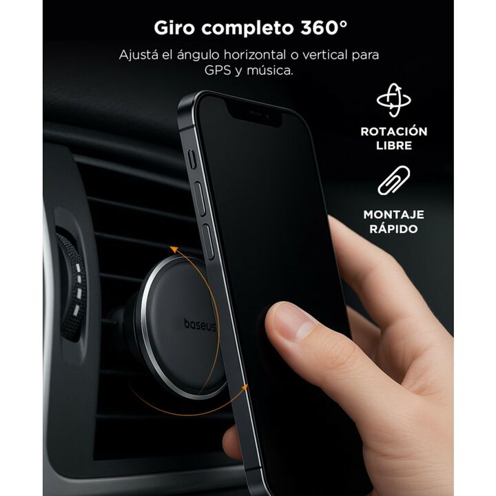 Fijación magnética segura: Cuatro imanes potentes mantienen tu celular estable incluso en caminos con baches. Rotación libre 360°: Ajustá tu smartphone al ángulo ideal para GPS o llamadas. Instalación rápida en rejilla: Se coloca en segundos, sin adhesivos ni herramientas. Orden para tus cables: Abr...