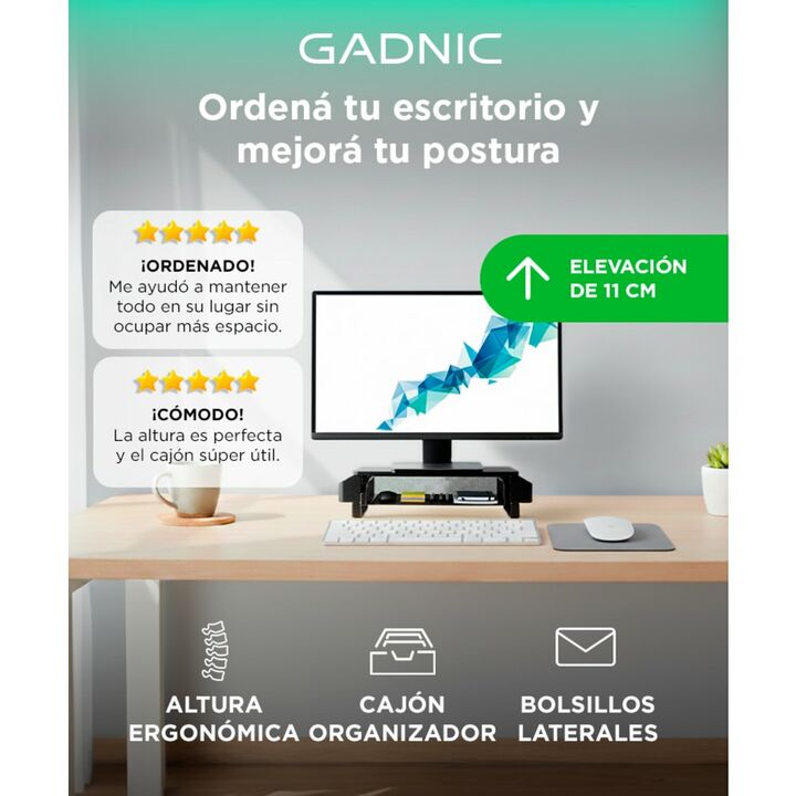 ¡Nuevo e Innovador Soporte Gadnic! El soporte para monitor, computadora o impresora presenta un diseño moderno y elegante que eleva su monitor para una máxima comodidad, reduce la tensión de los ojos y el cuello, tiene espacio debajo para un teclado, un práctico cajón para papel adicional e incluso ...