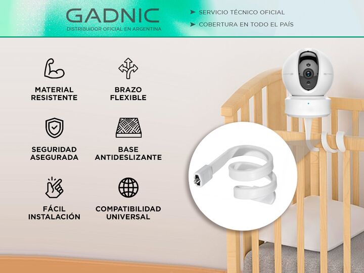 Gadnic presenta el nuevo Soporte Flexible Para Monitor de Bebé: Compatibilidad Universal: Diseñado para funcionar con una amplia gama de cámaras de bebé. Brazo Flexible: El brazo ajustable y flexible permite colocar la cámara en cualquier ángulo deseado, asegurando una vista perfecta en todo momento...