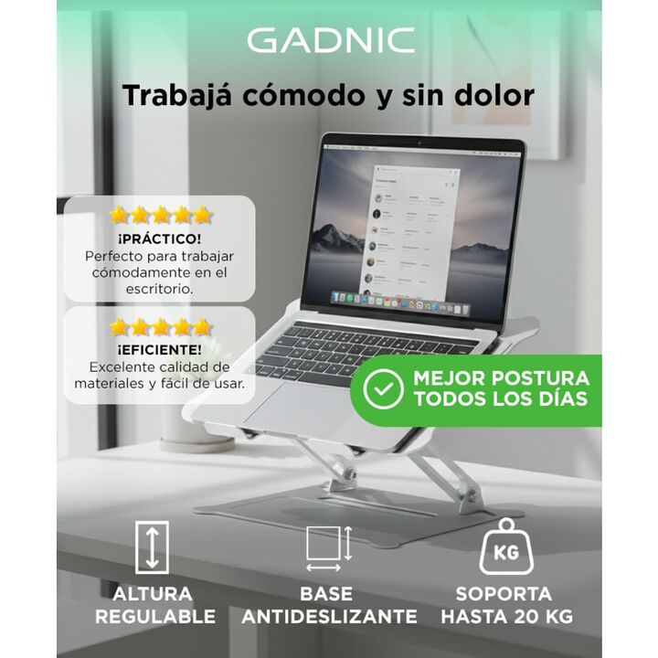 ¡Nuevo Soporte para Portátiles Gadnic! El diseño tipo Z es bueno para ajustarse a una altura ideal para escribir, ver y sentarse. Promover una buena postura para apoyar la espalda y el cuello. Este soporte para computadora portátil ayudará a reducir la rigidez en la espalda y el cuello. Este soporte...