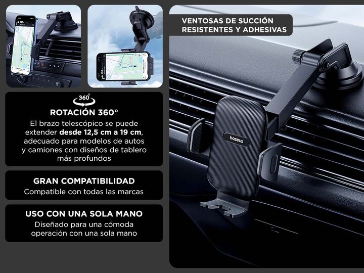El soporte para teléfono con abrazadera Baseus es la solución perfecta para mantener tu teléfono seguro y accesible mientras conduces. Con su diseño innovador y características de alta calidad, este soporte garantiza una experiencia de conducción sin preocupaciones. Ya sea que estés navegando por la...