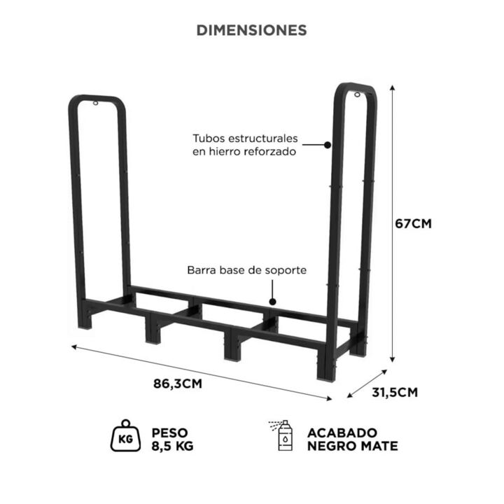 Almacenamiento estable para interior y exterior El soporte para leña Gadnic SHRACK57 mantiene los troncos secos ordenados y listos para usar en chimeneas hogares o fogones. Su estructura metálica reforzada brinda estabilidad incluso con carga completa. Es ideal para colocarlo en salas de estar patio...